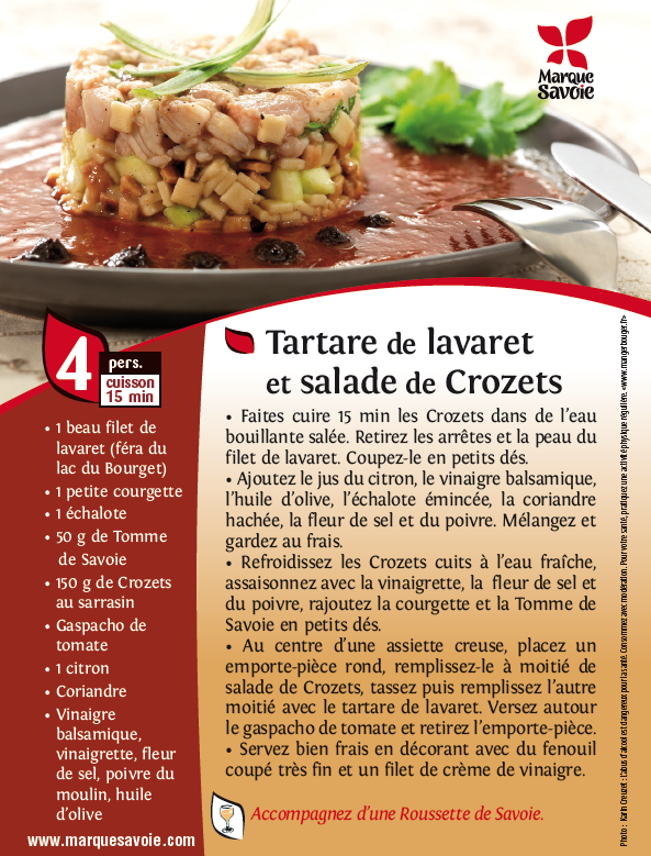 Voici deux recettes originales: la brique à l'emmental de Savoie et un tartare de lavaret et salade de Crozets.