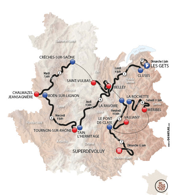 Le parcours de la 68ème édition du Critérium du Dauphiné, dévoilé ce matin à Lyon à l'Hôtel de Région Auvergne-Rhône-Alpes, se prête à une explication au long cours débutant dès le prologue en côte des Gets le 5 juin, jusqu'à…