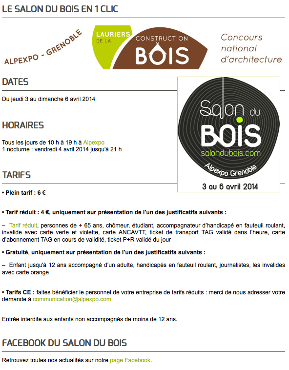Le salon du bois se déroulera du 3 au 6 avril à Alpexpo-Grenoble.. voici quelques infos pratiques...