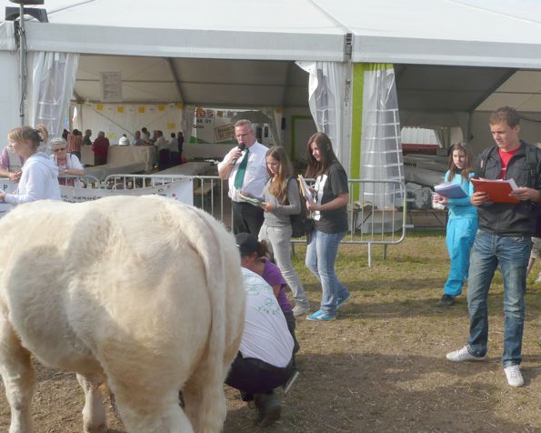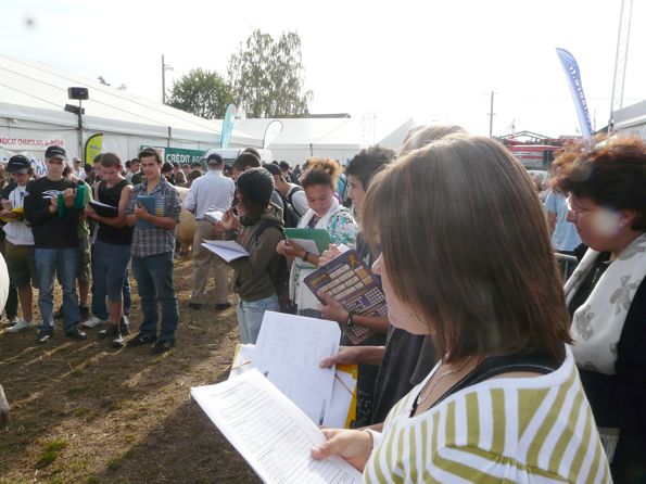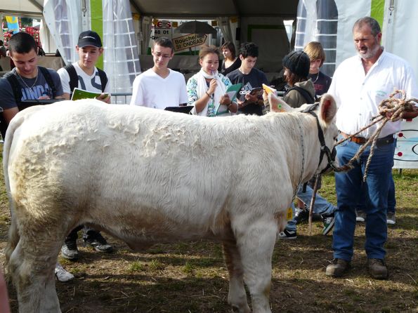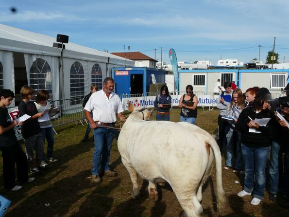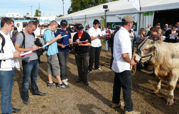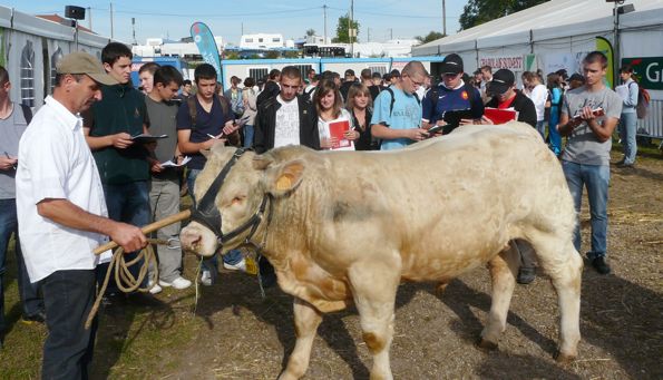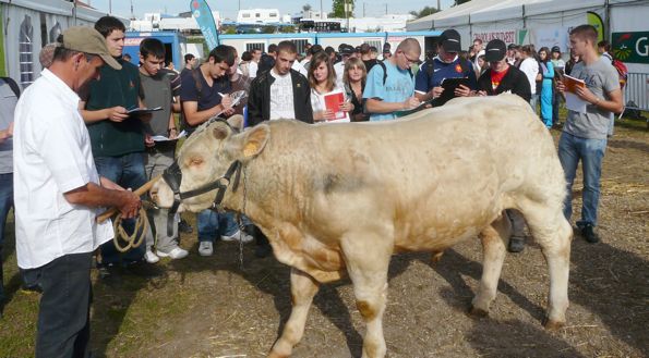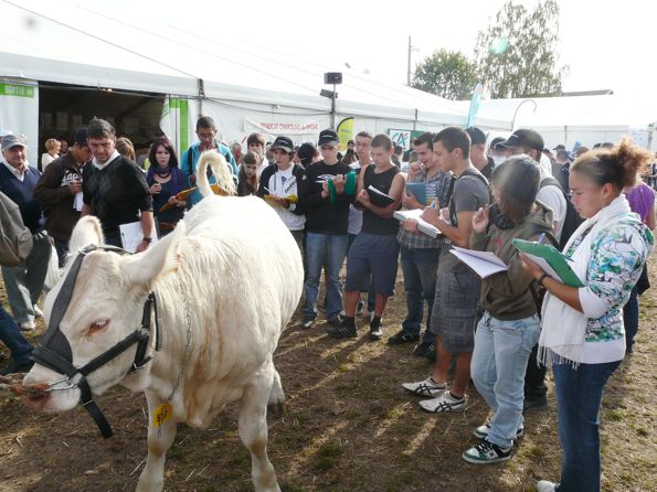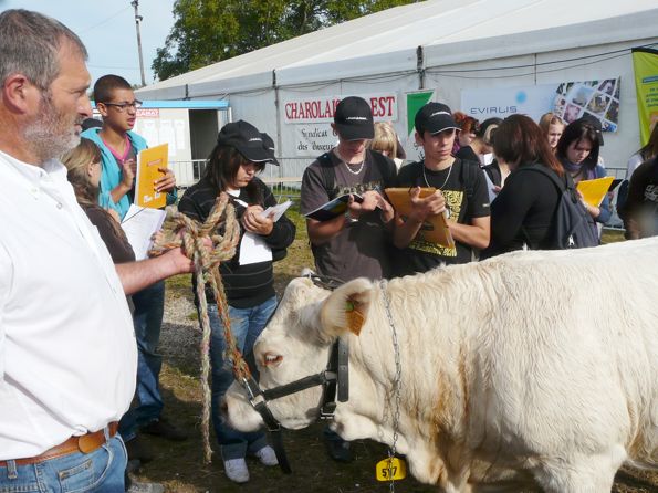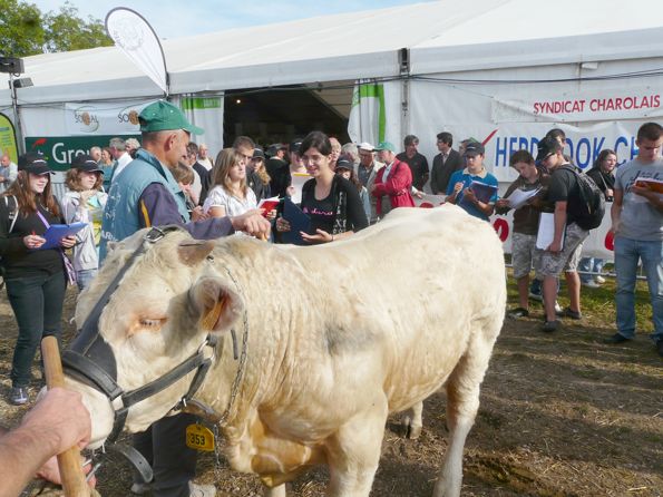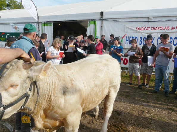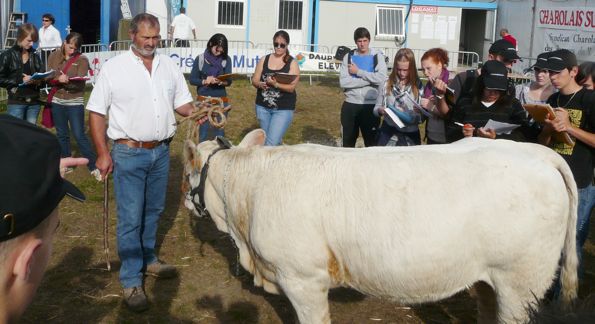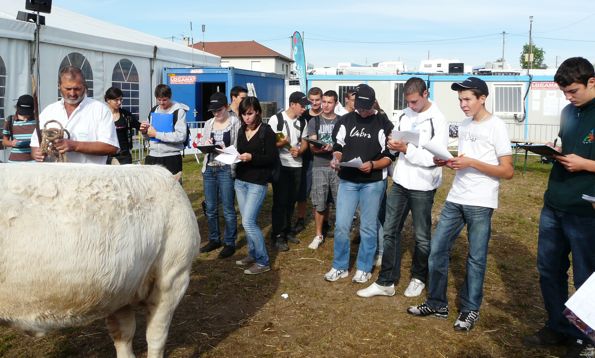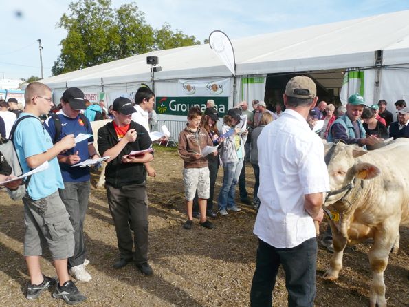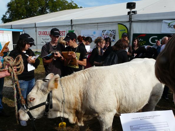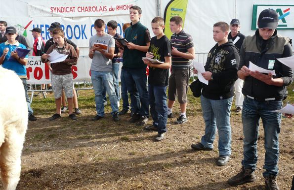 Lors du concours régional charolais, une matinée est réservée aux jeunes. a l’initiative du syndicat de la race Charolaise, les jeunes des établissements agricoles de la région participent au concours de pointage. Il s’agit pour les concurrents à noter deux animaux (une femelle et un mâle) selon des critères bien précis. Il faut en effet juger le développement musculaire et squelettique des animaux en fonction des critères répondant aux standards de la race. Cela demande obligatoirement une solide connaissance de la race Charolaise et des qualités d’observation des animaux.