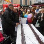 L’idée a très vite été acceptée par l’ensemble des partenaires, associations locales, la filière noix à travers le CING, Coopenoix, les nuciculteurs locaux a adhéré à ce projet avec un enthousiasme débordant. Ensemble, aidés par une centaine de bénévoles, ils ont réussi le pari de confectionner un gâteau d’une longueur totale de 286,15 mètres. Marcel Marron, maire de la commune, accompagné par André Vallini sénateur et président du conseil général de l’Isère étant les témoins officiels de ce record. Pour ce il a bien entendu fallu fermer une rue!