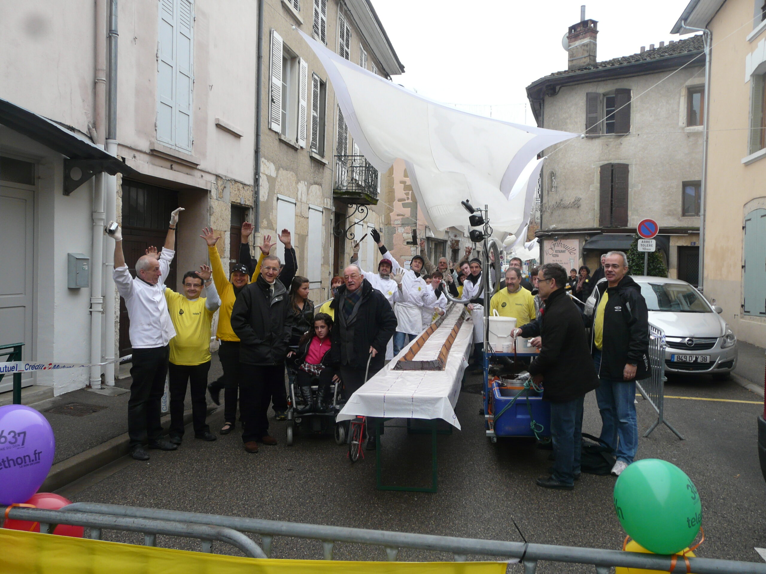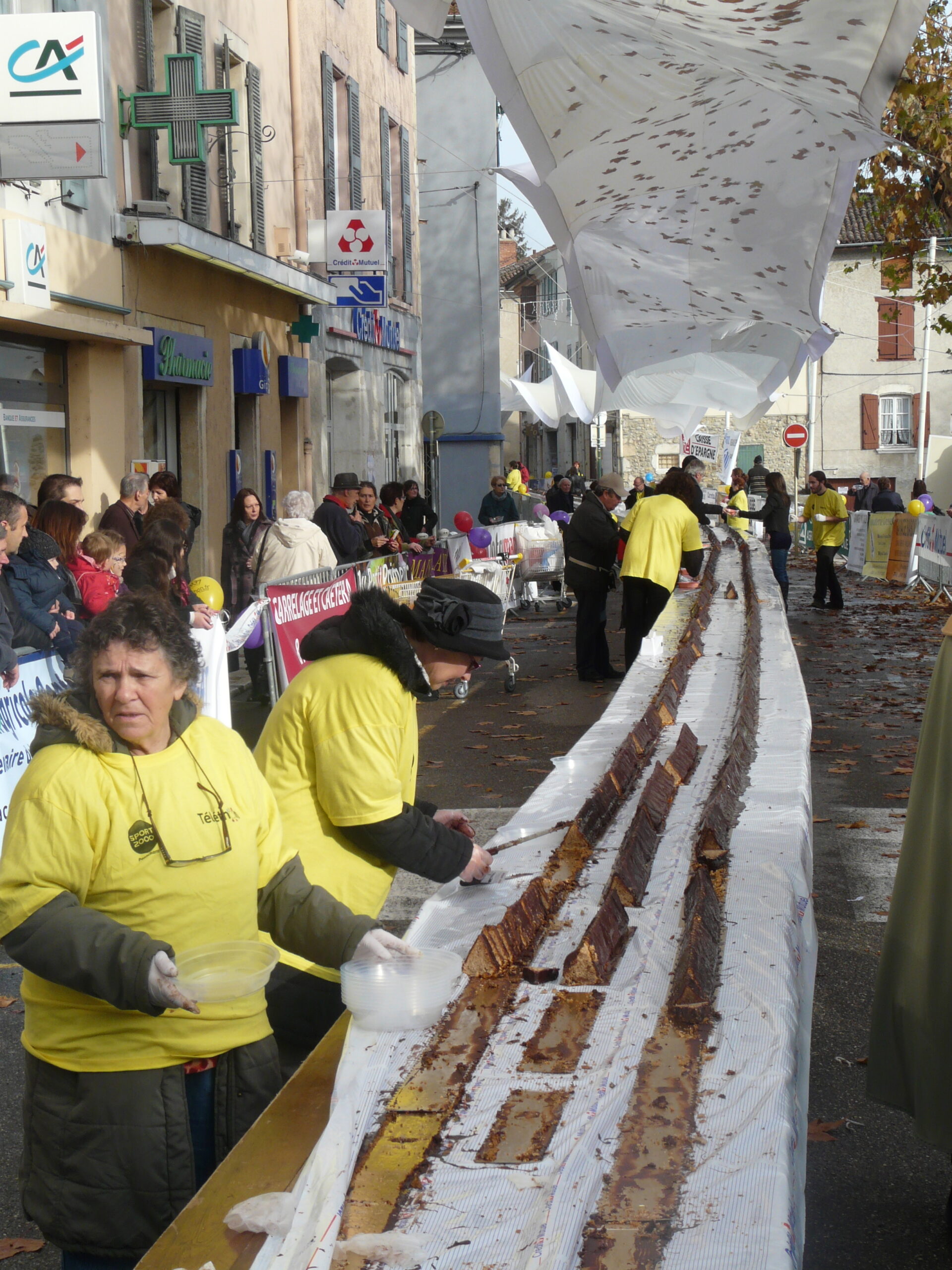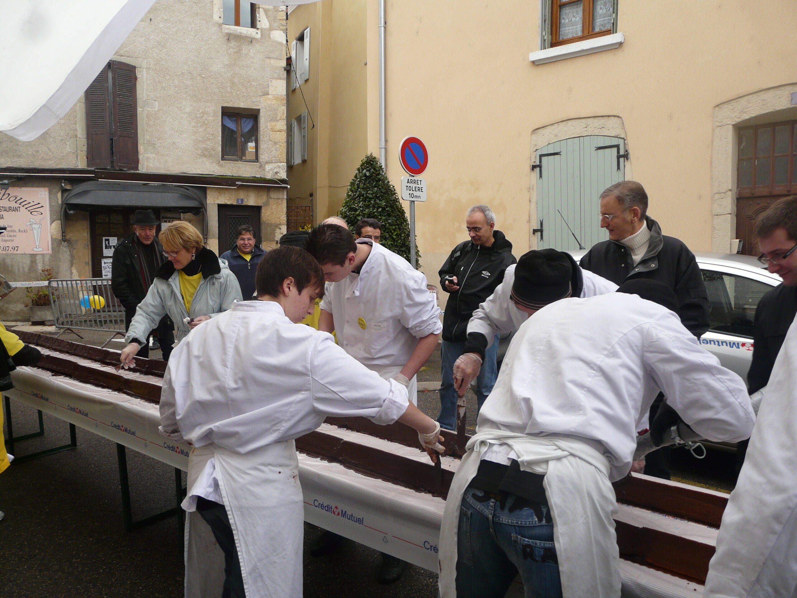 On retiendra cependant le défi lancé par l’association des artisans et commerçants de Tullins-Fures. Il s’agissait de réaliser un long, très long gâteau aux noix…