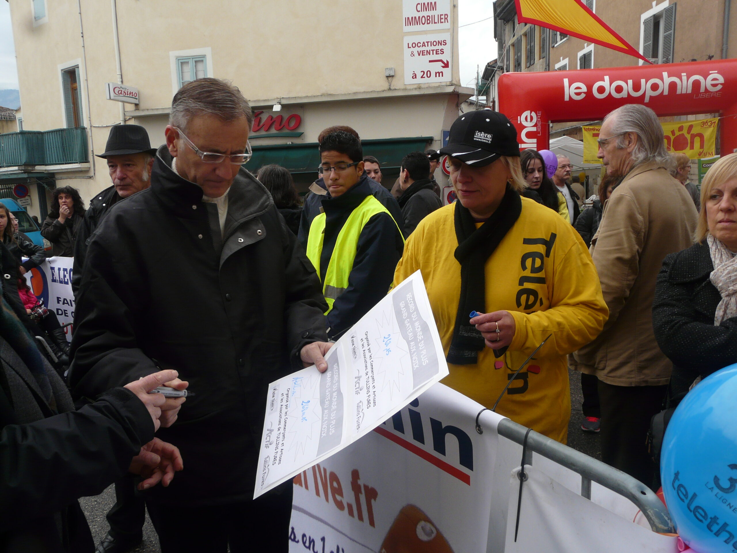 André Vallini: » on voit que malgré la conjoncture, les français répondent toujours présents quand il s’agit de générosité. également que la Nous sommes à Tullins, au coeur du pays de la noix de Grenoble, voir comment la filière noix s’est associée à ce défi démontre que la solidarité est toujours présente quand il s’agit de défendre de nobles causes.