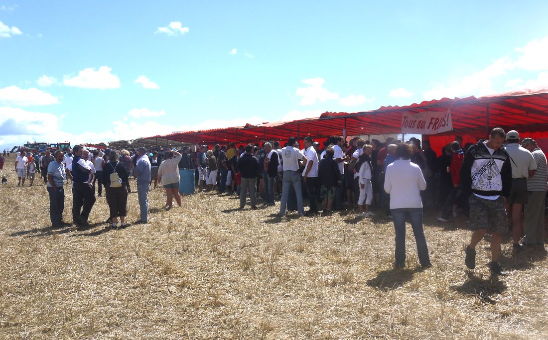 On retiendra bien entendu le concours de labour du matin et… La fameuse tentative du record de labour en simultané. il s’agit de faire labourer une parcelle par le plus grand nombre de tracteurs. La mobilisation a été au rendez vous. Nous avons rencontré des agriculteurs en provenance du canton de St Jean de Bournay mais nombre d’entre eux se sont déplacés de bien plus loin..