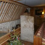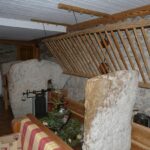 Celui ci a transformé la ferme de façon très originale et a tenu à garder une certaine histoire… Voilà pourquoi dans l’ancienne étable transformée en pièce à vivre, la salle à manger et le salon, on découvre des lauzes qui séparaient les animaux.