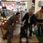 René Drevon, éleveur de veaux et Thierry Blanchet, agriculteur à La Murette et membre de la chambre d’Agriculture ont tenu à soutenir cette opération. Thierry Blanchet n’hésitant pas à mettre ses muscles à contribution pour une pressée pleine de bonne humeur…Il a tout de même demandé l’aide du directeur du magasin Alain Galliot et des frères Convert!!!!( voir photos)