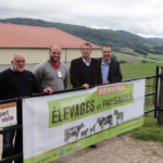 Jean-Claude COLLOMB et sont fils Morgan, Jean-Jack QUEYRANNE, Président de la Région RA et Alexandre MERLE, Président de la Section Veau d’INTERBEV Rhône-Alpes.
