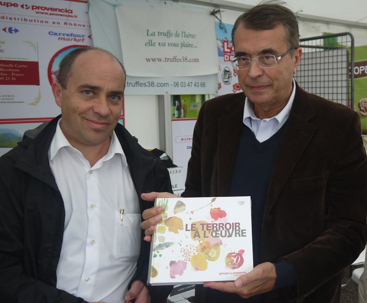 Il a fait deux arrêts remarqués. Au stand des AOP de l’Isère, ou il a été accueilli par Alain Galliot, directeur de Carrefour Voiron, groupe Provencia et Pierre Gallin Martel, président de Coopenoix.