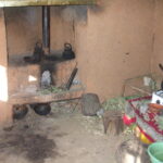 Deux petites pièces (1cuisine et une salle repas). La chambre est indépendante. L’électricité est arrivée il y a 4 ans par l’installation d’un petit panneau solaire qui alimente pour 1 ou 2 heures une ampoule dans la cuisine et la chambre uniquement. L’eau, un robinet à l’extérieur, est arrivée il y a 2 ans alimentée par une réserve sur le toit..Il permet de faire la lessive et la toilette.
