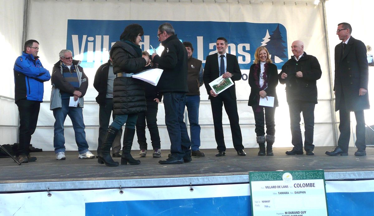 Guy Durand, éleveur sur le Vercors mais aussi Président national de l’Organisme de Sélection des Races alpines s’est dit heureux de présenter des villardes à Villard de Lans » commune ou nous sommes toujours bien accueillis »..Il a informé le nombreux public que la villarde fait partie des races à conservation tout comme 16 autre races en France. » Elles ont des noms très peu connu.. Il faut dire que les races de conservation sont constituées d’un cheptel inférieur à 1000 animaux. »