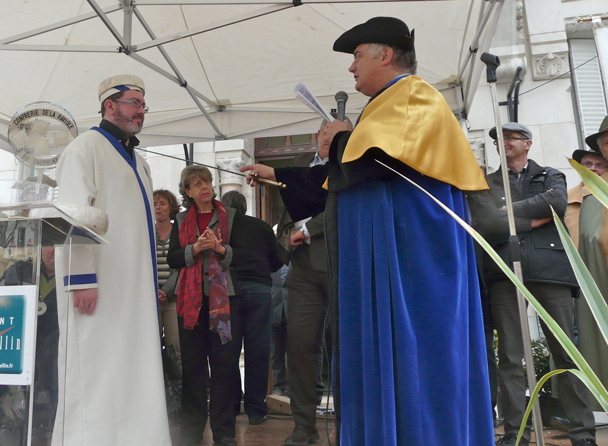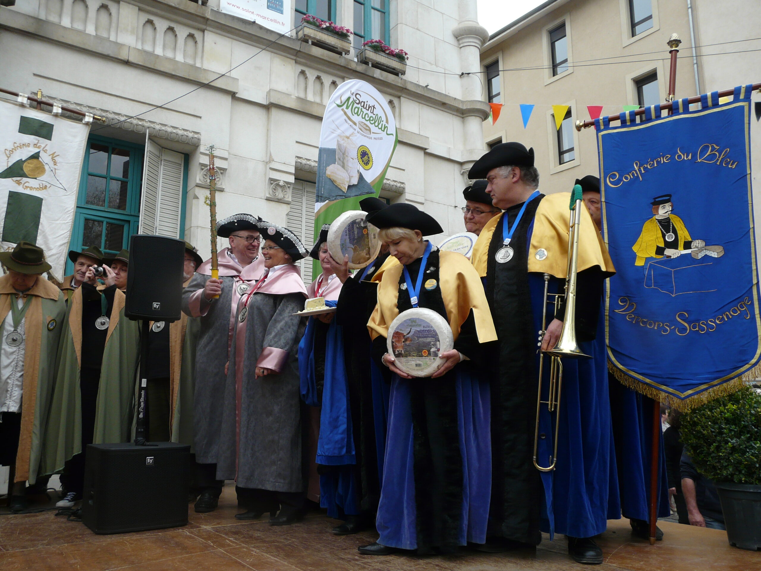 Cette fête a également été le moment de baptiser la toute nouvelle confrérie du St Marcellin. Celle ci a comme marraine les confréries du bleu du Vercors Sassenage, de la noix de Grenoble, du Murçon, du Picodon, de la raviole… Inutile de dire que la cérémonie c’est déroulée dans une ambiance conviviale, confraternelle..Le grand maître de la confrérie du St Marcellin étant François Ballouhey.