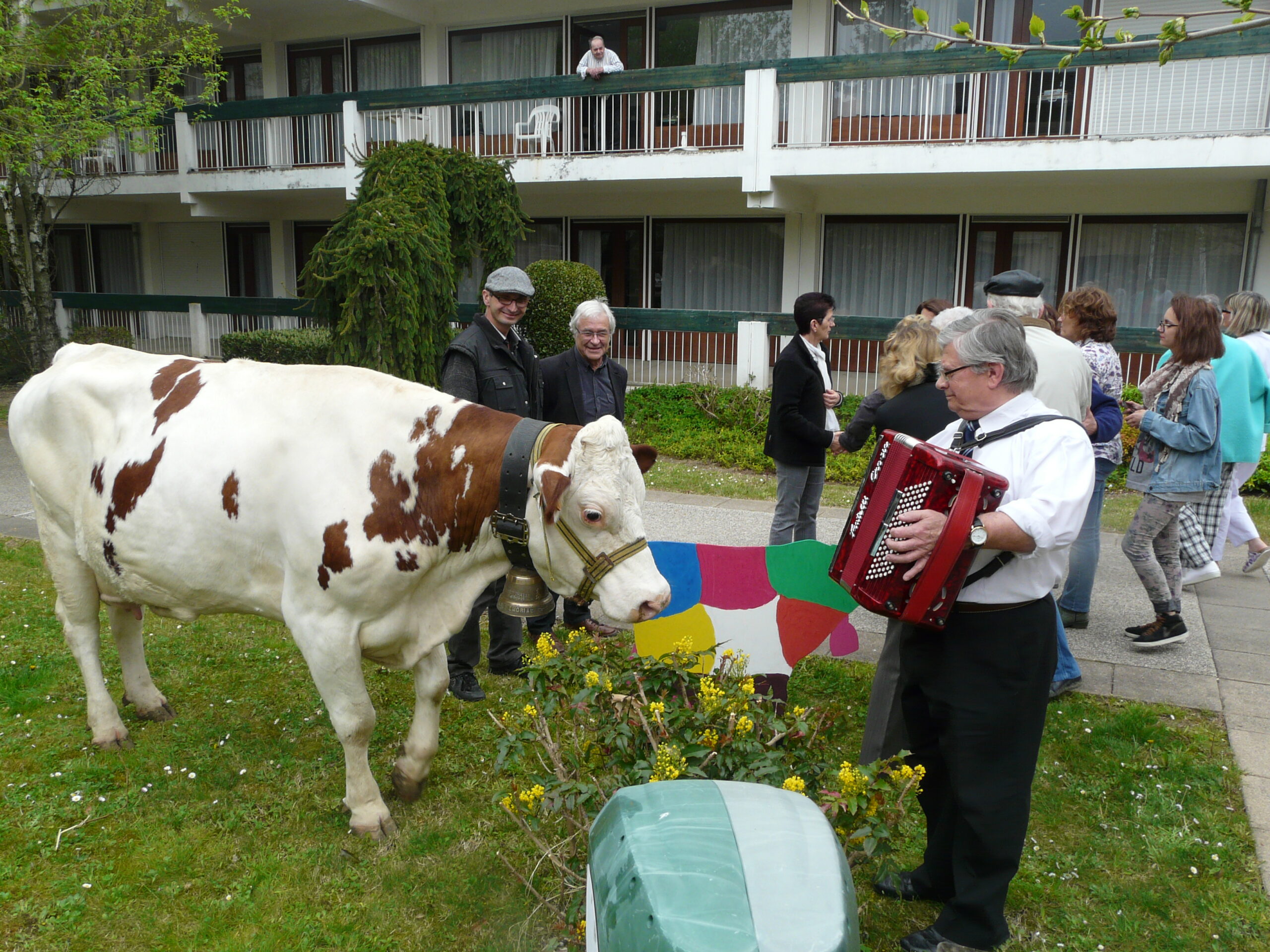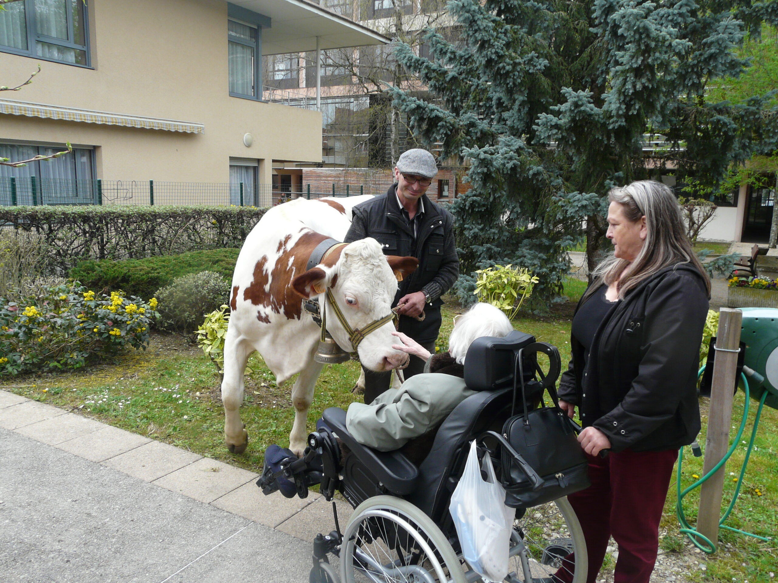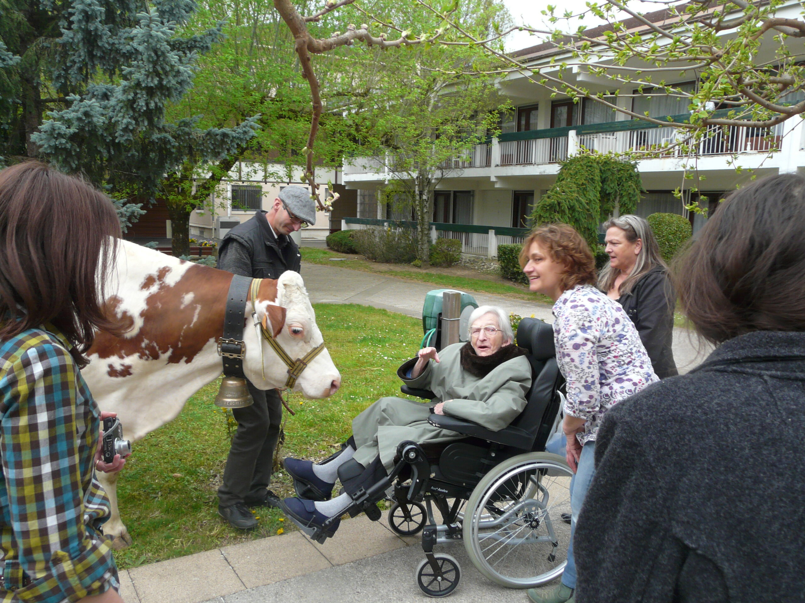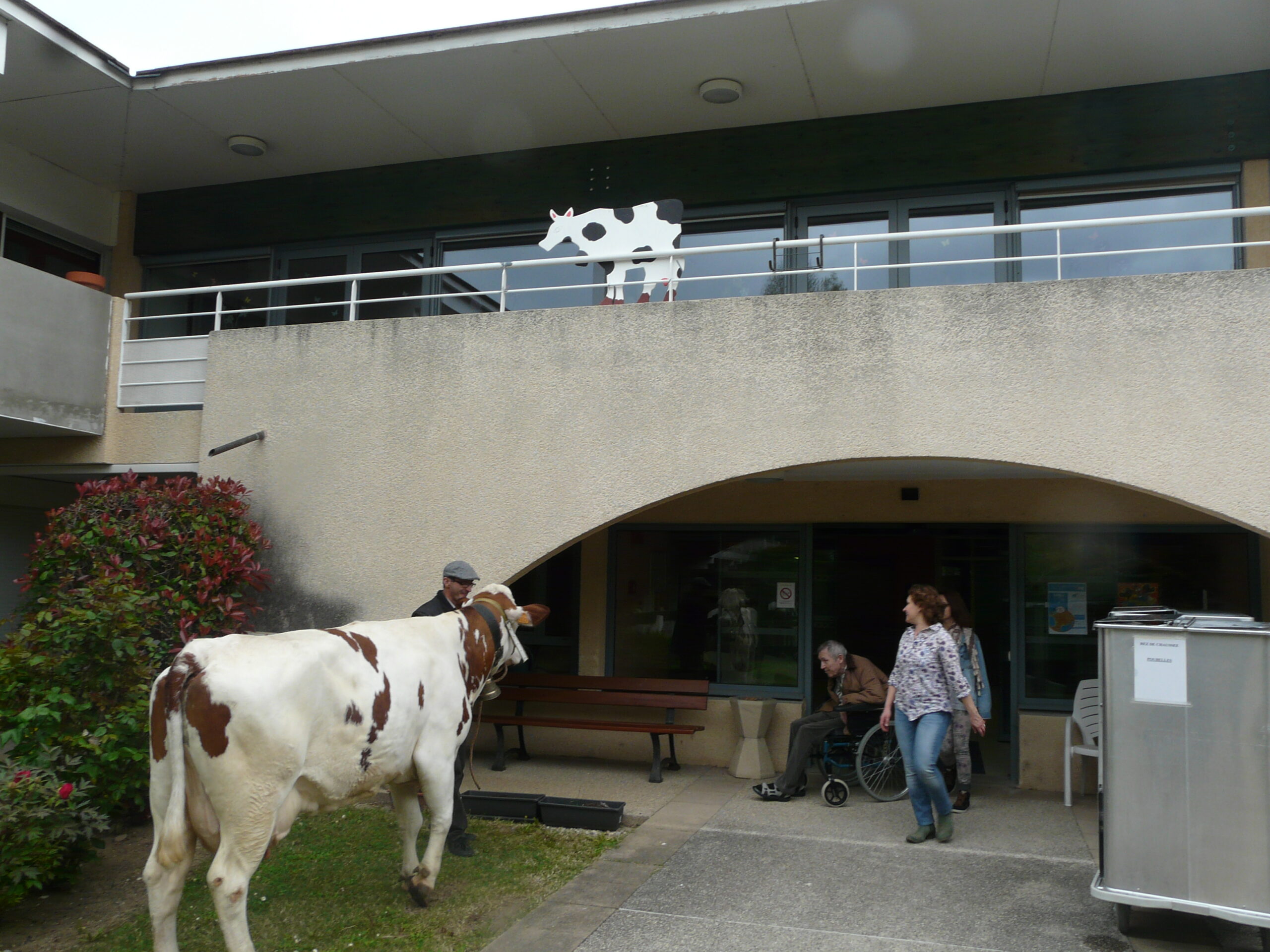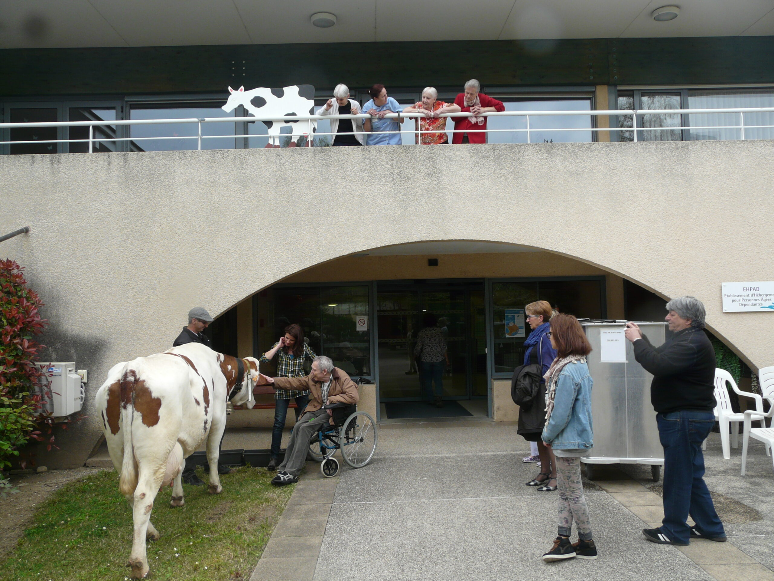 Nous tenons à féliciter les organisateurs de cette fête qui ont eu l’excellente idée de mener Bouquine, la vache star de la fête à l’EHPAD de la ville. Ses résidents ont beaucoup apprécié cette animation inattendue..