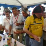 Nous avons beaucoup apprécié le marché des producteurs locaux qui nous ont régalé des produits de la Mathéysine… On a découvert l’espace tourisme, le mobile dream.. même Bernard Thévenet s’y est essayé.. et que dire de l’espace de la Confrérie du Murçon Matheysin.. Inlassablement les membres de cette jeune, mais très dynamique confrérie ont fait déguster Murçon, tourte… et clou de la journée, ils ont intronisé trois personnalités, trois champion.