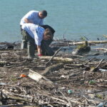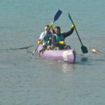 Le ramassage des déchets s’est fait à pied du bord mais aussi à l’aide de bateaux motorisés et de canoës.