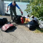 Des centaines de sacs de détritus ont été collectés.. on a retrouvé des téléviseurs, batteries de voiture, extincteurs, un réservoir d’essence de voiture et une foule d’objets divers… qui ont été ramassés par bâteau, canoës mais aussi par des bénévoles qui n’ont pas hésité à rentrer dans l’eau, jouer les équilibristes sur des troncs d’arbres, pour réparer la » bêtise » de certains.