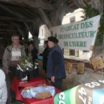 L’ambiance sous la halle de Crémieu était donc conviviale, bon enfant avec plusieurs producteurs venus présenter leurs produits: fromages, charcuteries, confiserie, bière, chocolats..