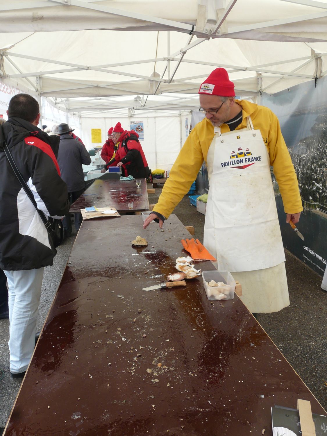 Imaginez vous que ce dimanche midi il ne restait plus une coquille St Jacques à vendre.. Cela veut dire que 20 tonnes de coquilles ont trouvé preneur..Record largement battu puisque lors de la dernière édition il s’en été vendu environ 15 tonnes…