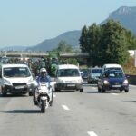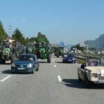 Une bonne cinquantaine de tracteurs, autant de voitures.. ont ensuite pris la direction de Grenoble, via l’A 480 totalement bloqué.. jusqu’au Pont de Catane. Le cortège entrant en ville pour accéder à sa destination finale: le siège de la direction départementale des Territoires.