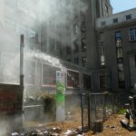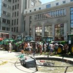Ce mercredi 5 août il en était autrement. Il s’agissait de dénoncer » outre le fait que nous n’avons pas les prix que nos produits méritent et qui nous permettraient de vivre, mais le fait qu’on nous impose de plus en plus de contraintes, à tous les niveaux. On dit donc stop aux contraintes et on va le faire savoir de façon spectaculaire à l’Etat via une manifestation » musclée devant la Direction Départementale des Territoires » nous dira un jeune agriculteur exaspéré.