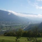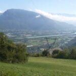 Prenant une route forestière nous avons pu découvrir l’agglomération grenobloise de haut.. Une vue nous a impressionné, celle bien plongeante sur la confluence du Drac et de l’Isère..