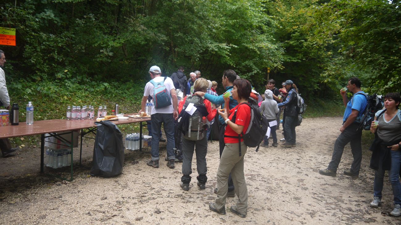 Si le Vercors est un plateau, ses versants sont raides…! Dès le départ il a fallu longer le ruisseau l’Eyrard pendant plus d’un kilomètre bien pentu qui aurait pu décourager plus d’un randonneur… Certes nombreux sont ceux qui ont peiné mais tous sont arrivés au point de ravitaillement pour une collation et un repos bien mérité..