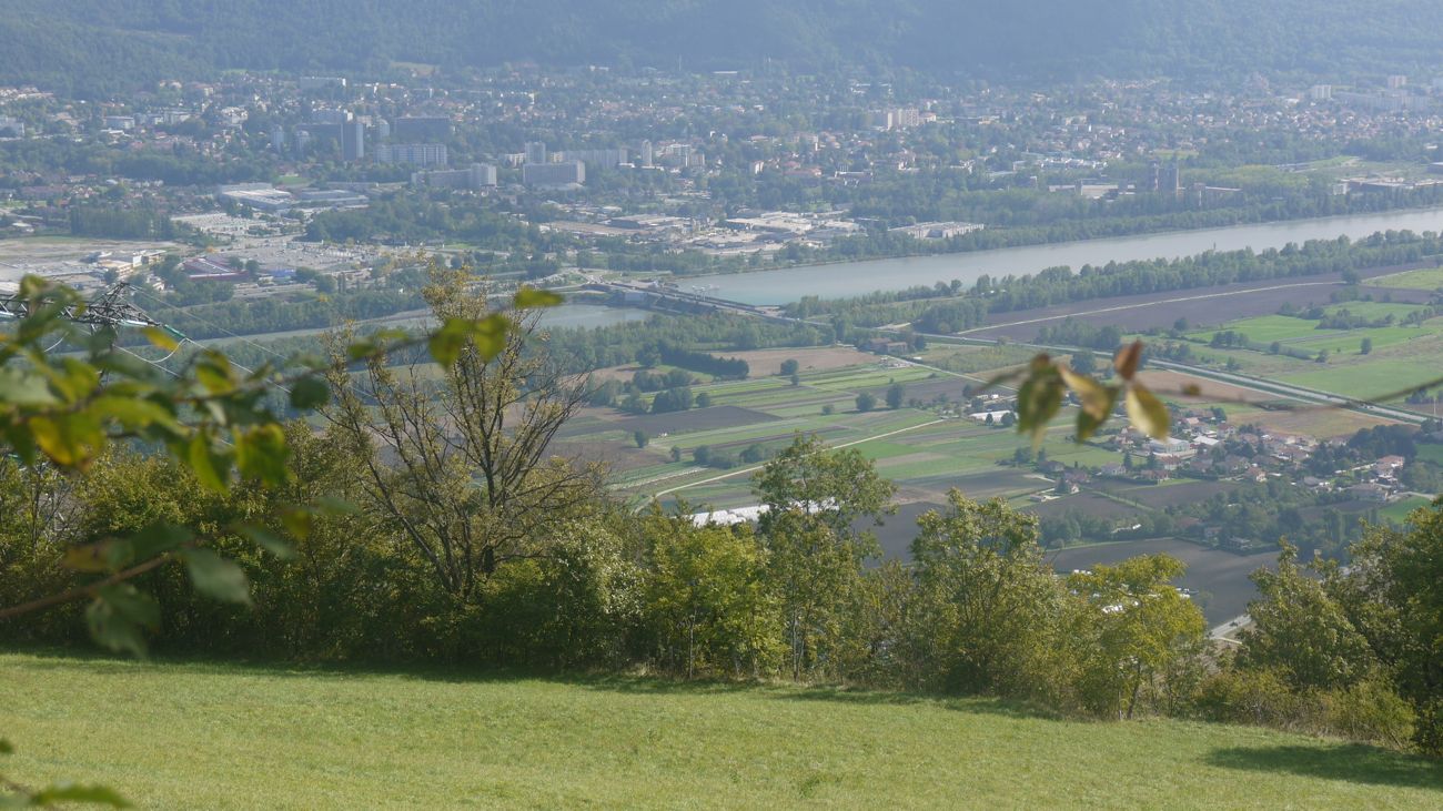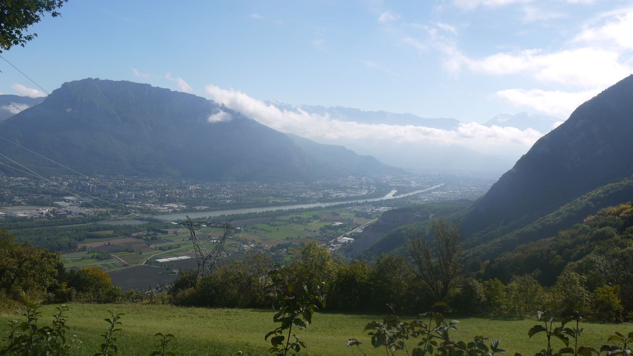 Prenant une route forestière nous avons pu découvrir l’agglomération grenobloise de haut.. Une vue nous a impressionné, celle bien plongeante sur la confluence du Drac et de l’Isère..