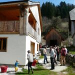 Les chèvres quittent l’exploitation en septembre 2012. que faire du bâtiment d’élevage? » soit on le démolissait pour faire un parking pour la ferme auberge de notre fille, soit on l’aménageait.. » précise Bernard Roux. L’idée de faire un gîte de groupe a vite germé et dès mars 2013 les travaux démarrent ..et en juillet 2015 les premiers clients arrivent de … Suède!.
