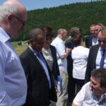 Il était accompagné de Michel Dantin, eurodéputé, Lionel Beffre, préfet de l’Isère, Chantal Carlioz, vice présidente du département, Jacques Adenot, président du parc régional du Vercors. Marie-Noëlle Battistel, député de l’Isère, Jean-Claude Darlet, président de la chambre d’agriculture de l’Isère, Christiane Lambert, présidente du FNSEA, Franck Girard président de la communauté de communes du massif du Vercors, Hubert Arnaud, maire d’Autrans -Méaudre; Mickaël Kraemer maire de Lans en Vercors étaient également présents.