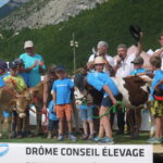 Les graines d’éleveurs ont remplacé leurs aînés sur le stand principal pour défiler et exposer les jeunes génisses. Venus de loin (de Haute-Savoie pour certains), ils avaient de 2 à 10 ans. Ils ont montré leur passion pour le monde de l’élevage sous les yeux du juge et de Jacques Adenot, président du parc du Vercors. Ce dernier, affirmant que leur participation était un symbole fort et une source de moral pour les générations précédentes, a préféré tous les déclarer vainqueurs.