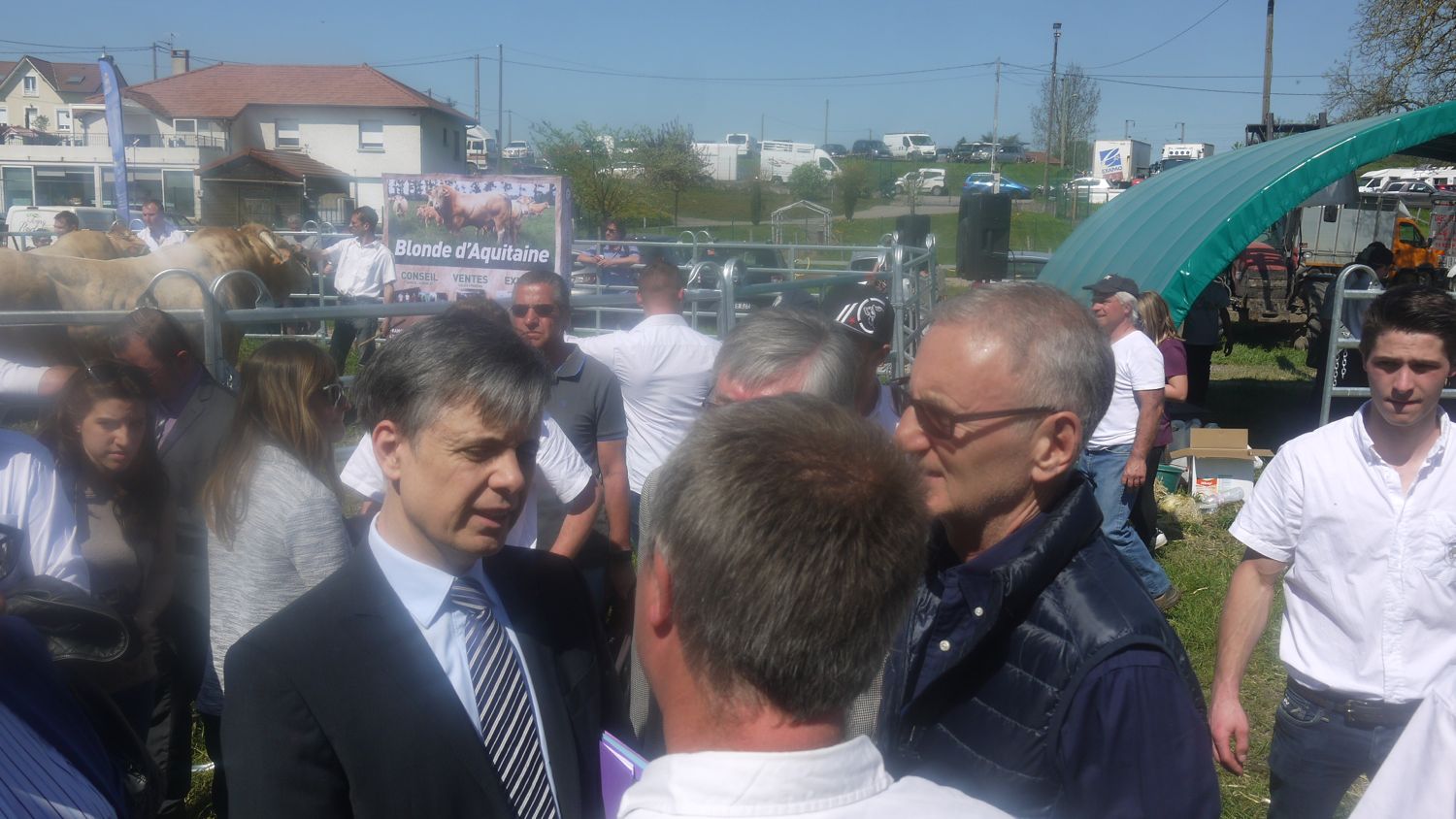 Avec en tête de cortège le préfet de l’Isère, Lionel Beffre, élus et personnalités ont visité la foire en faisant de nombreuses haltes au niveau des animaux dont les volailles et les bovins. Halte plus prononcée au centre du concours de la race blonde d’Aquitaine..