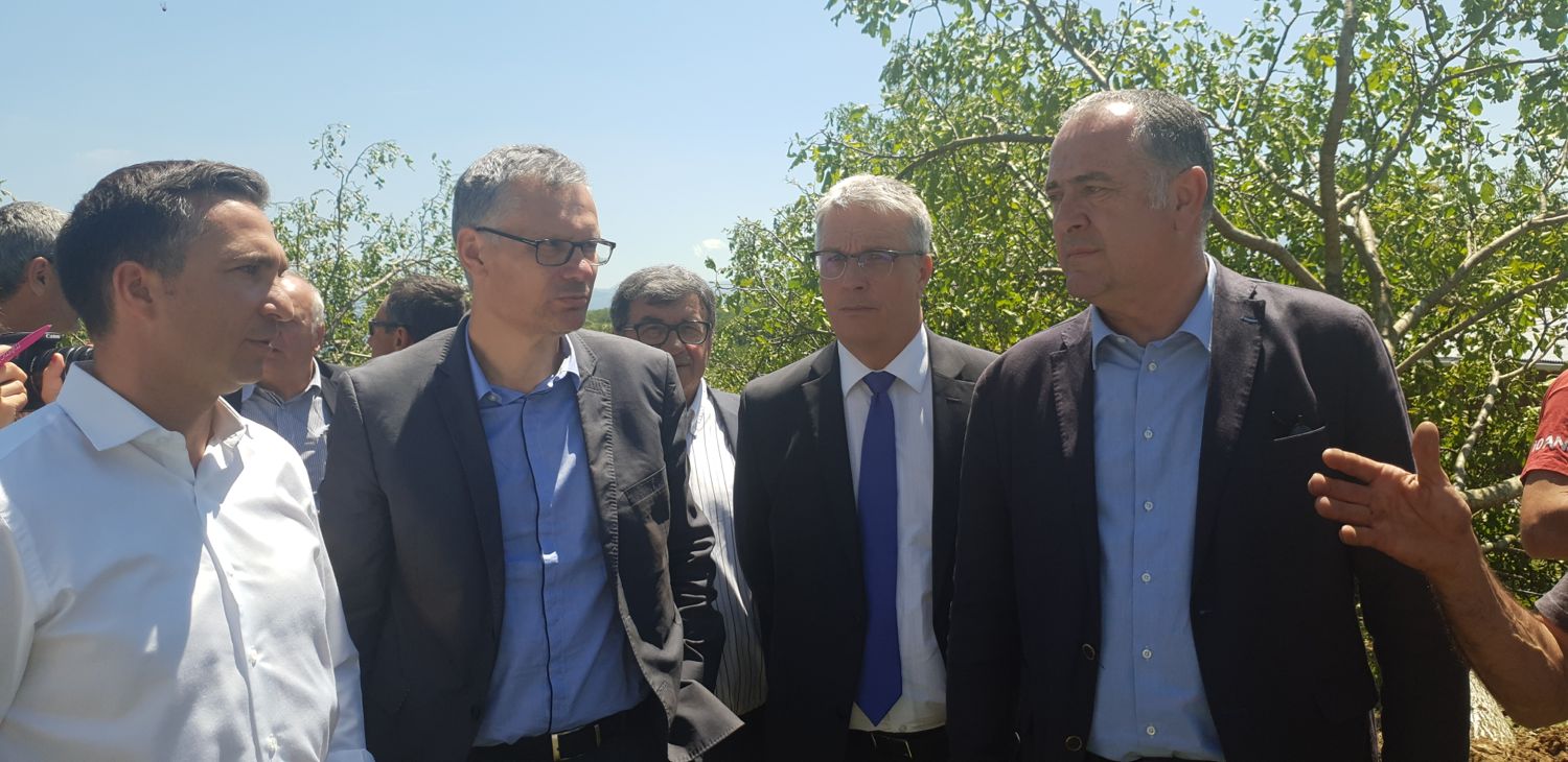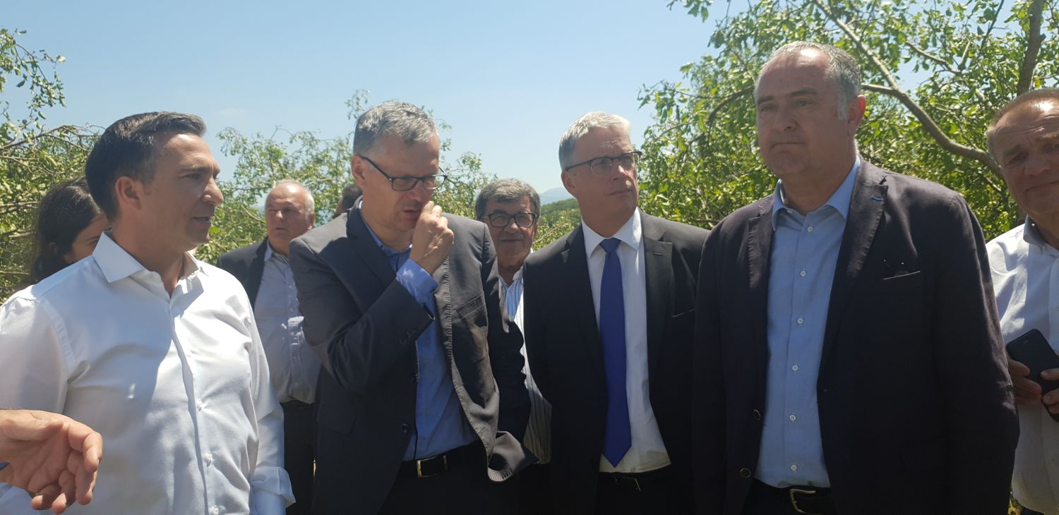 Didier Guillaume ministre de l’agriculture a quant à lui visité l’exploitation de Christian Bofelli nuciculteur à Montagne. De nombreux élus ont assisté à cette visite dont Jean Pierre Barbier Président du Conseil Départemental accompagné de Robert Duranton vice Président en charge de l’agriculture. Bien entendu l’ensemble des structures de la filière noix étaient représentées ainsi que de nombreux nuciculteurs.