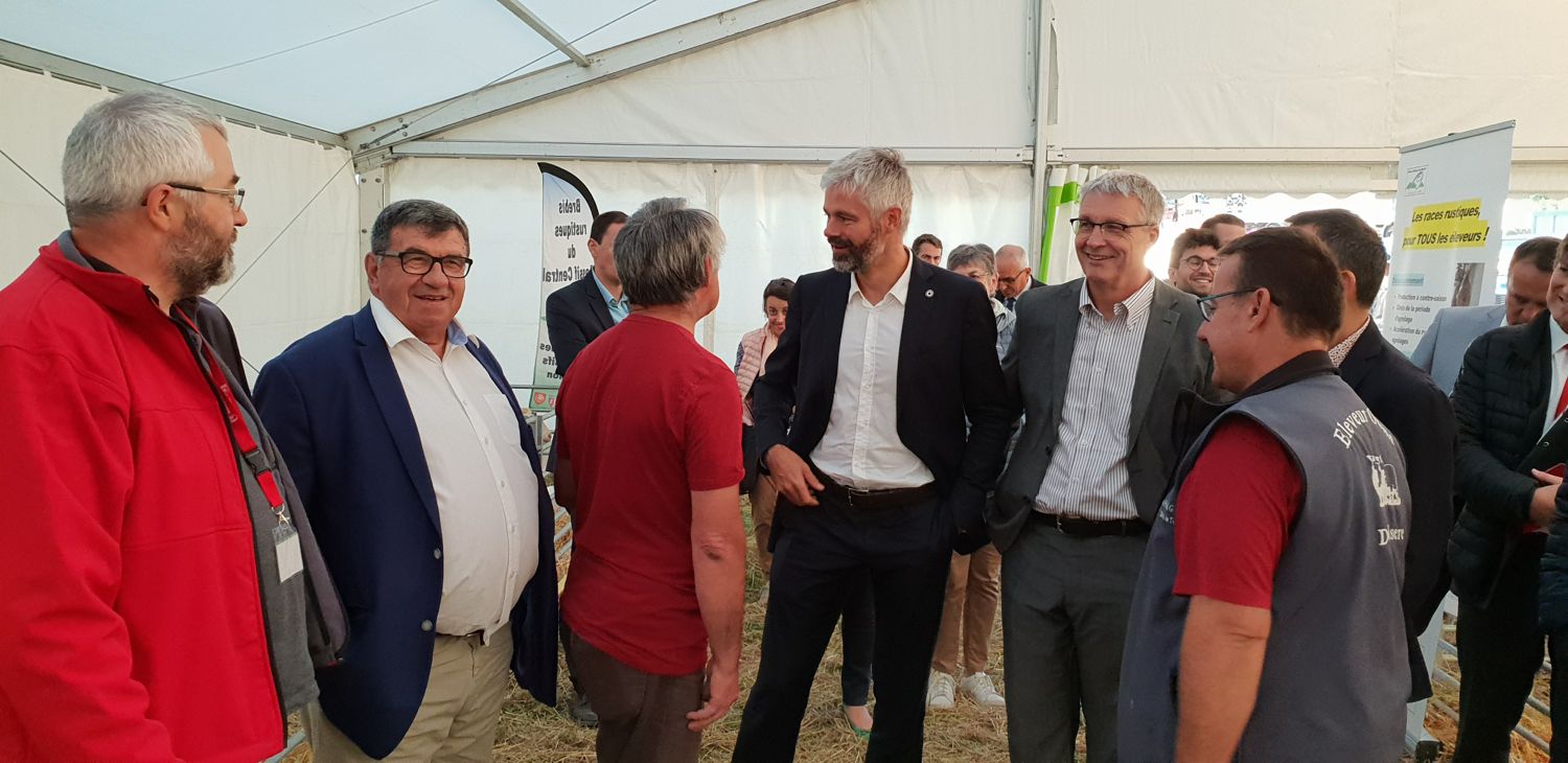 Laurent Wauquiez, président de Région, Jean Pierre Barbier président du département accompagné de robert Duranton , vice président en charge de l’agriculture ont tenu a affirmer leur soutien aux éleveurs en étant présents au coeur de l’espace charolais mais aussi ovin très tôt le vendredi matin, jour de l’inauguration..