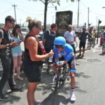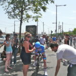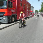 On a vu Bernard Thévenet mais aussi Bernard Hinault, de nombreux sportifs, le président de la région Rhône-Alpes, JJ Queyranne… et aussi des coureurs. Ceux ci au nombre de 208 ont du affronter une petite côte mais aussi et surtout la chaleur.. Plus de 35° à l’ombre…